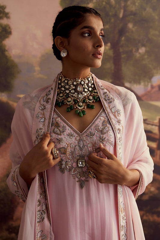 PASTEL PINK EMBROIDERED KURTA SET