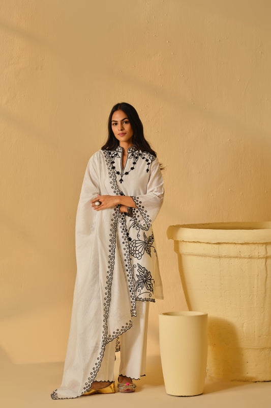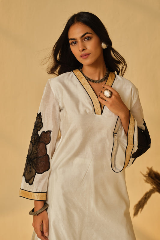 IVORY-BLACK KARDANA FLOWER KURTA SET