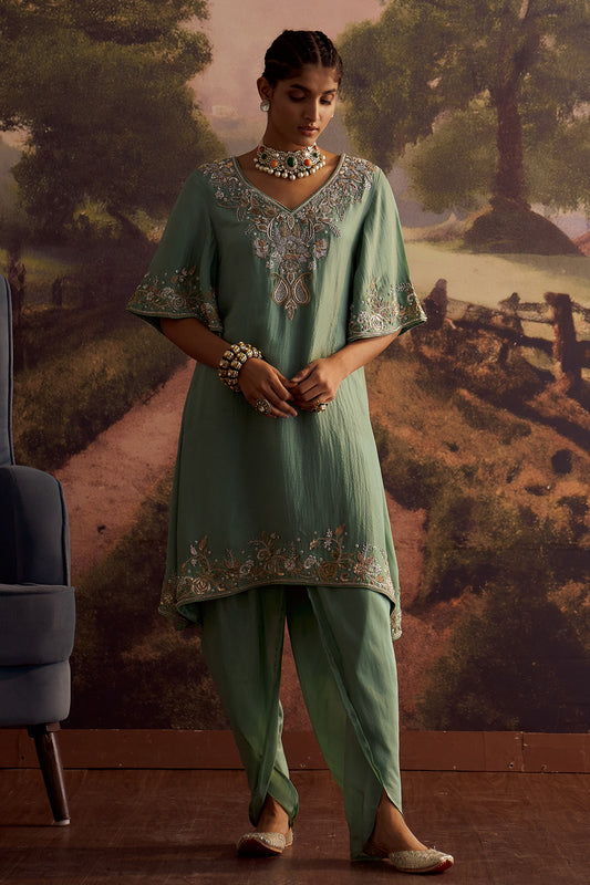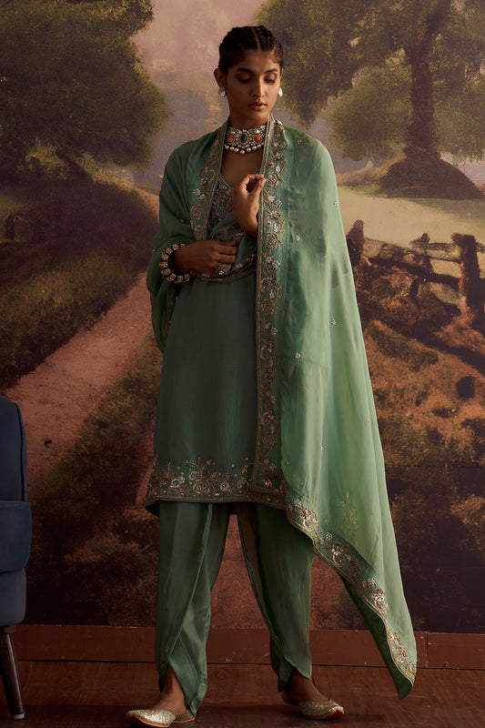 SAGE GREEN EMBROIDERED KURTA SET
